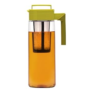 Able to hold up to 64 ounces (8 cups), the Takeya Iced Tea Maker is great for brewing hot or cold tea, or for sun brewing. The attractive pitcher features a fresh design with a clear AcraGlass body and avocado-colored twist-top lid, so it's also great for bringing to the table and serving. The lightweight AcraGlass is BPA-free, as well as stain and odor proof, and it is more durable than glass. The removable rotating lid-infuser fully extracts the tea flavors while steeping, and makes clean-up easy. A soft-grip silicone handle allows for easy pouring or transporting. Dishwasher safe, the unit comes with its own reader-friendly user guide.